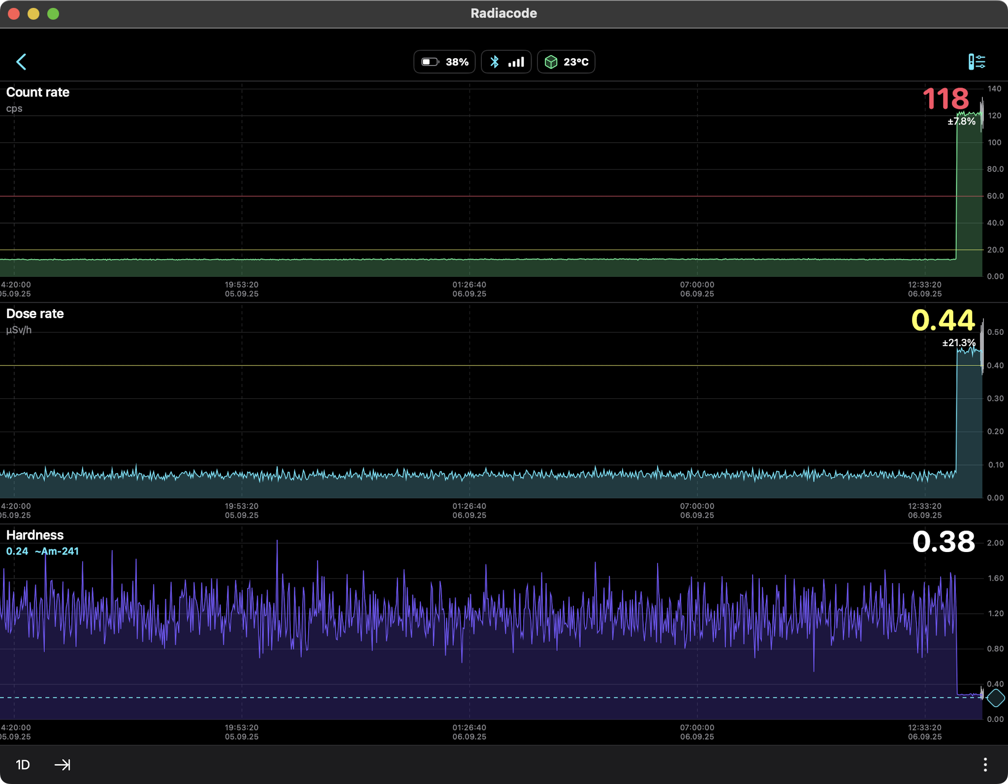 the Radiacode 103G measured a dose rate of 0.44 µSv/h which