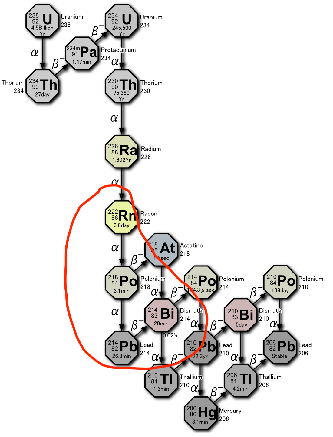 Radon-222 (Rn-222) occurs naturally - part of the uranium-238